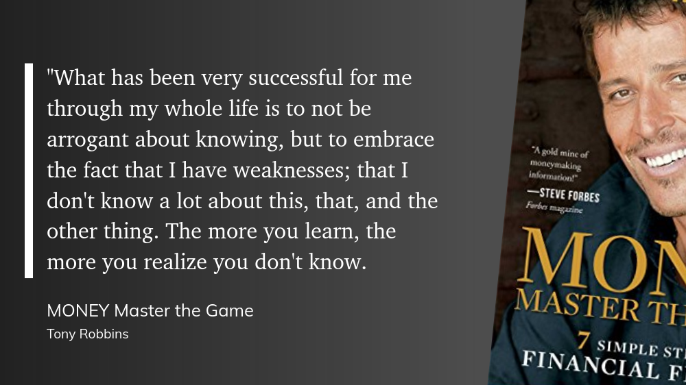 Lo que ha sido muy exitoso para mí durante toda mi vida es de no ser arrogante acerca de le que sé, al contrario, de aceptar el hecho de que tengo debilidades; que no sé mucho sobre esto, aquello y lo otro. Cuanto más aprendes, más te das cuenta de que no sabes.