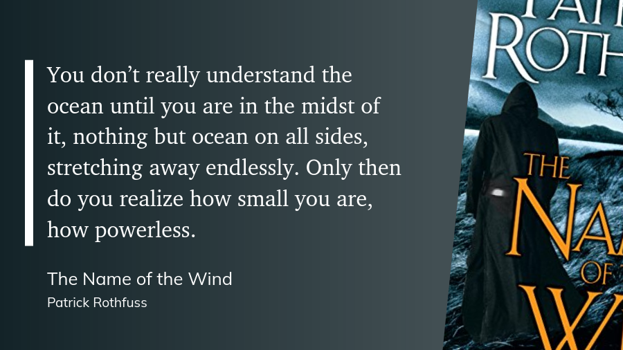 Realmente no entiendes el océano hasta que estás en medio de él, nada más que océano por todos lados, extendiéndose sin fin. Solo entonces te das cuenta de lo pequeño que eres, de lo impotente que eres.