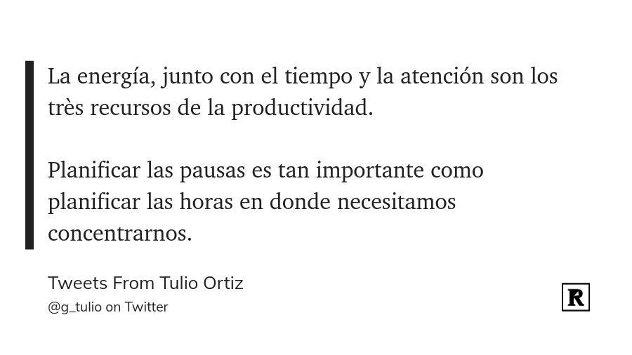 Esta semana empezaron mis vacaciones. Creo que no me equivoco si digo que a todo el mundo nos encantan estos periodos donde podemos relajarnos. Pero la reflexión que me gustaría hacer esta semana es de resaltar la importancia del descanso en nuestras rutinas y en nuestra vida diaria. En dos de los mejores libros que he leído de productividad, el tema de la energía ocupa una gran parte y los autores dan numerosos consejos. Los libros en cuestión son: "Make Time" y "The productivity project".
